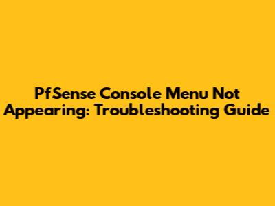 PfSense Console Menu Not Appearing: Troubleshooting Guide