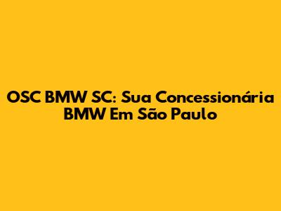 OSC BMW SC: Sua Concessionária BMW Em São Paulo