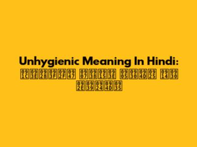 Unhygienic Meaning In Hindi: जानिये इसका अर्थ और महत्व