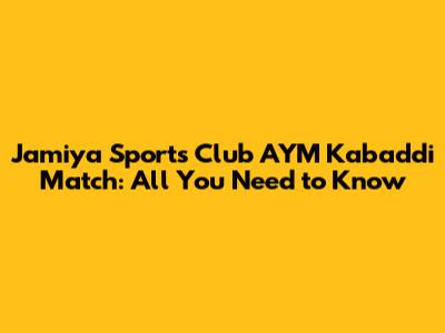 Jamiya Sports Club AYM Kabaddi Match: All You Need To Know