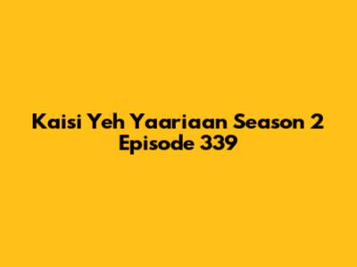 - YouTube: Many episodes are available on YouTube, uploaded by various channels. Just search for "Kaisi Yeh Yaariaan Season 2 Episode 339" and you should find multiple options.