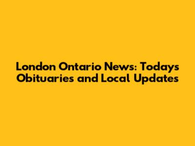 London Ontario News: Today's Obituaries And Local Updates