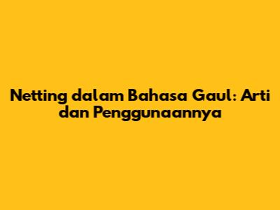 Bahasa gaul terus berkembang, menciptakan istilah-istilah baru yang unik dan menarik. Salah satu istilah yang mungkin sering kamu dengar adalah "netting." Tapi, apa sebenarnya arti netting dalam bahasa gaul? Dan bagaimana cara menggunakannya dengan tepat? Mari kita bahas tuntas!