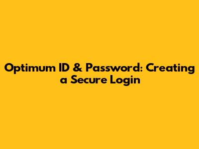 Optimum ID & Password: Creating A Secure Login