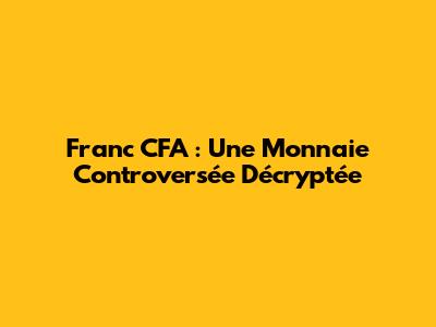 Franc CFA : Une Monnaie Controversée Décryptée