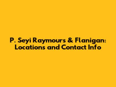 Hey guys! Are you looking for P. Seyi Raymours & Flanigan addresses and contact information? You've come to the right place. In this article, we'll dive deep into everything you need to know about getting in touch with them. Whether you're planning a visit or need to reach out for customer support, we've got you covered. So, let's get started!