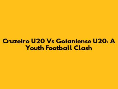Cruzeiro U20 Vs Goianiense U20: A Youth Football Clash