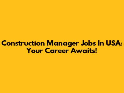 Construction Manager Jobs In USA: Your Career Awaits!