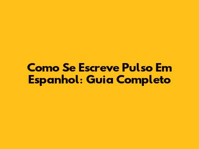Como Se Escreve 'Pulso' Em Espanhol: Guia Completo