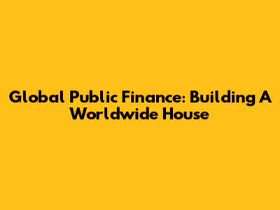 Global Public Finance: Building A Worldwide House