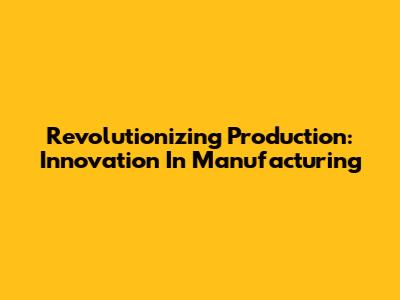 Revolutionizing Production: Innovation In Manufacturing