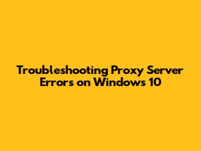 Troubleshooting Proxy Server Errors On Windows 10
